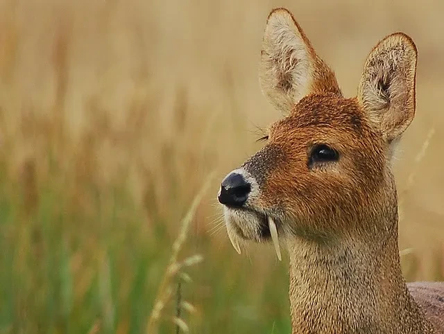 고라니의 가장 큰 특징 중 하나는 바로 송곳니인데요. 특히 수컷은 평균 5.5cm, 길게는 8cm까지 자라는 송곳니가 입 밖으로 삐죽 튀어나와 있어 "뱀파이어 사슴(Vampire deer)"이라는 무시무시한 별명도 가지고 있답니다. (암컷도 짧지만 날카로운 송곳니를 가지고 있다는 건 안 비밀! 😉) 이 송곳니는 과시용이나 싸울 때 사용된다고 하네요.